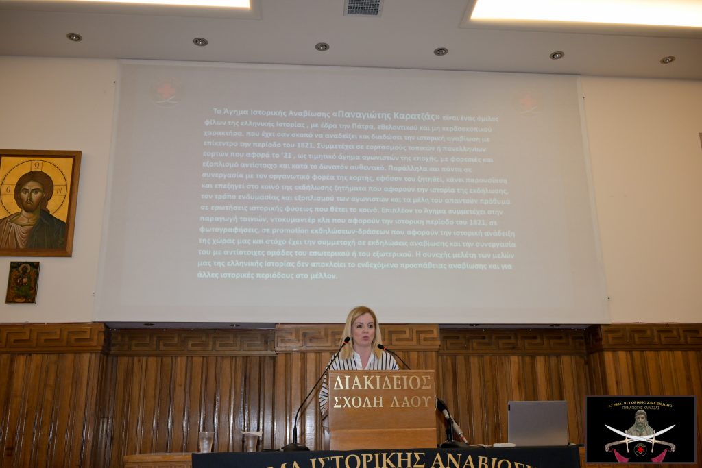 Το Τμήμα Ιστορίας-Αρχαιολογίας συμμετείχε με ομιλήτρια την επίκουρη καθηγήτρια Κωνσταντίνα Καρακώστα. Τα στρατιωτικά γεγονότα που οδήγησαν στην απελευθέρωση της πόλης τον Οκτώβριο του 1828 καθώς και οι πολιτικές, κοινωνικές και πολιτισμικές αλλαγές που συνέβησαν στην Πάτρα τα αμέσως επόμενα χρόνια αποτελέσαν τους άξονες της ομιλίας της.